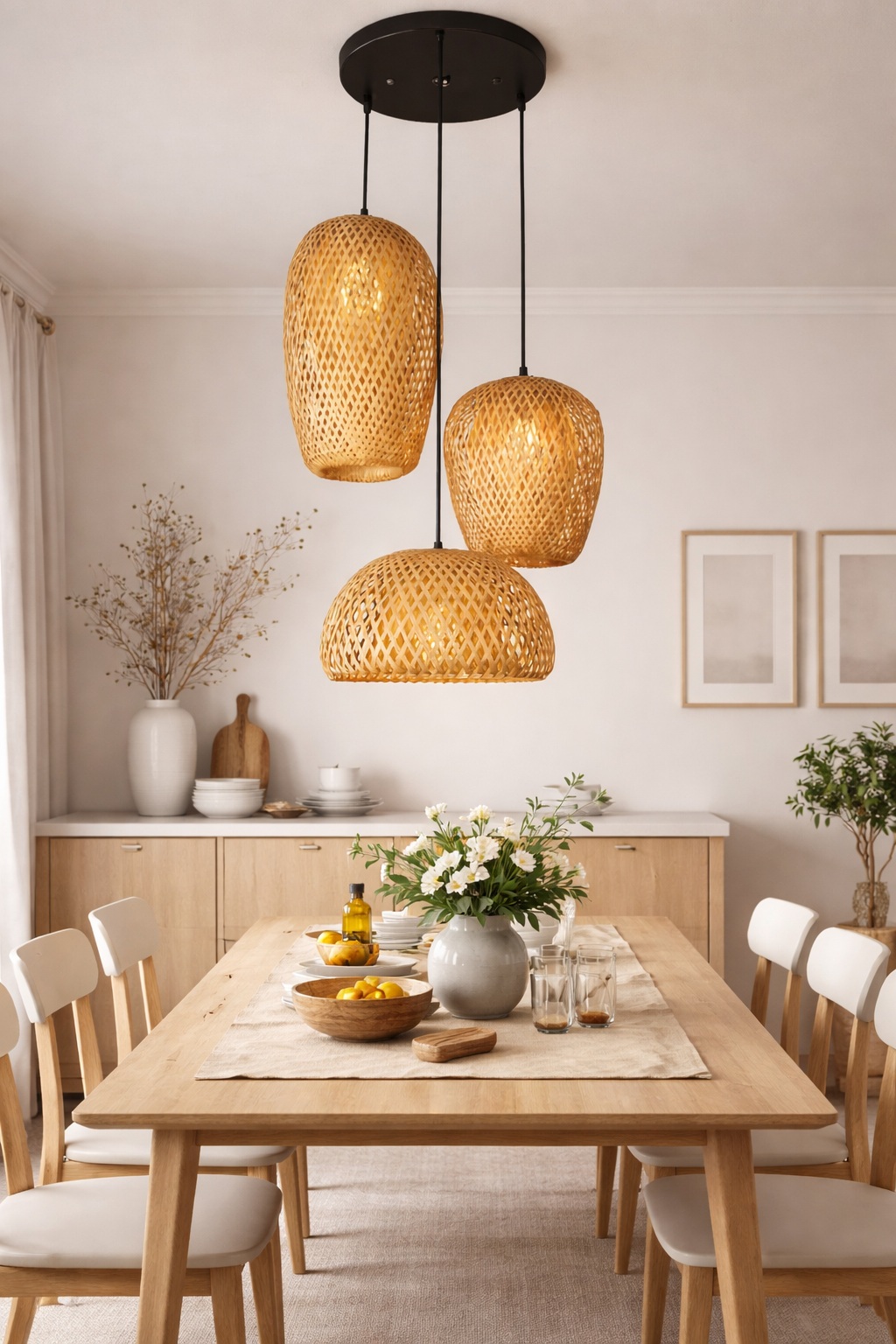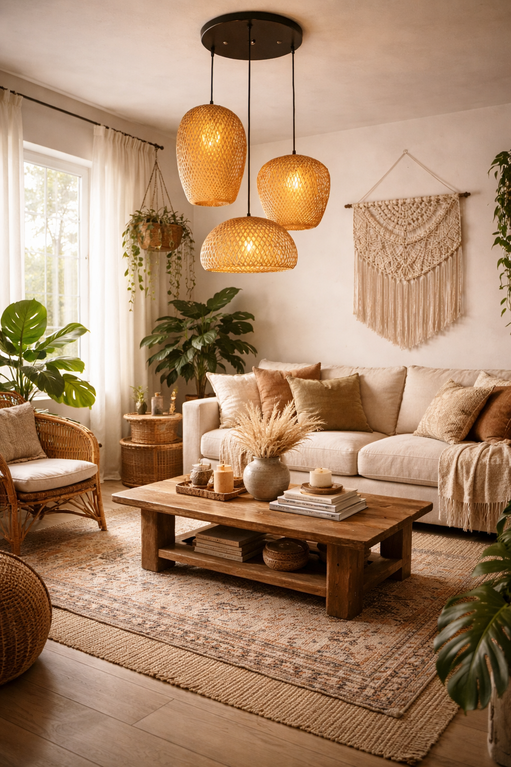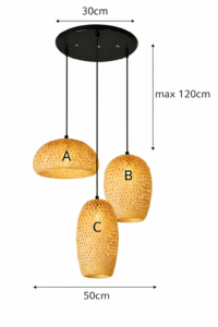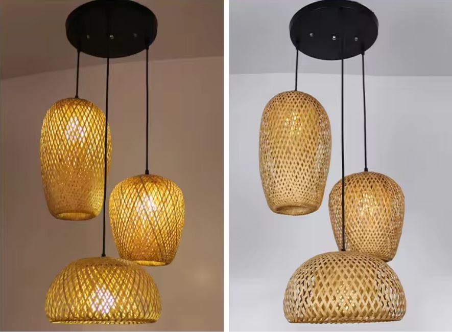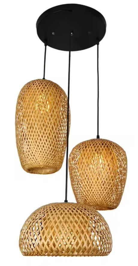 Wisząca lampa bambusowa Kaskada BOHO Naturalna pleciona Rattan 3 punkty światła E27